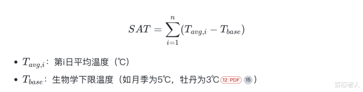 SAT(Sum of Active Temperature)指植物在特定生长阶段内高于生物学下限温度的有效温度总和,其通用公式为: